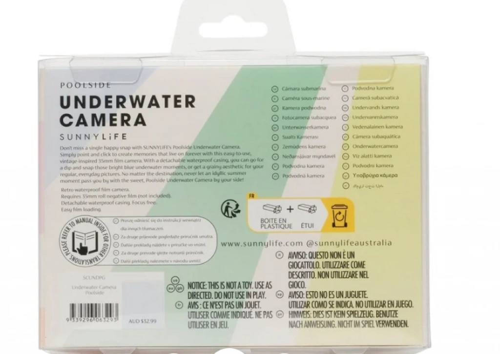 Retro su geçirmez filmli fotoğraf makinesi, 35 mm roll film negatif kullanımı gerektirir (film dahil değildir). Odaksız (focus free) çekim özelliği sayesinde pratik ve eğlenceli bir kullanım sunar.